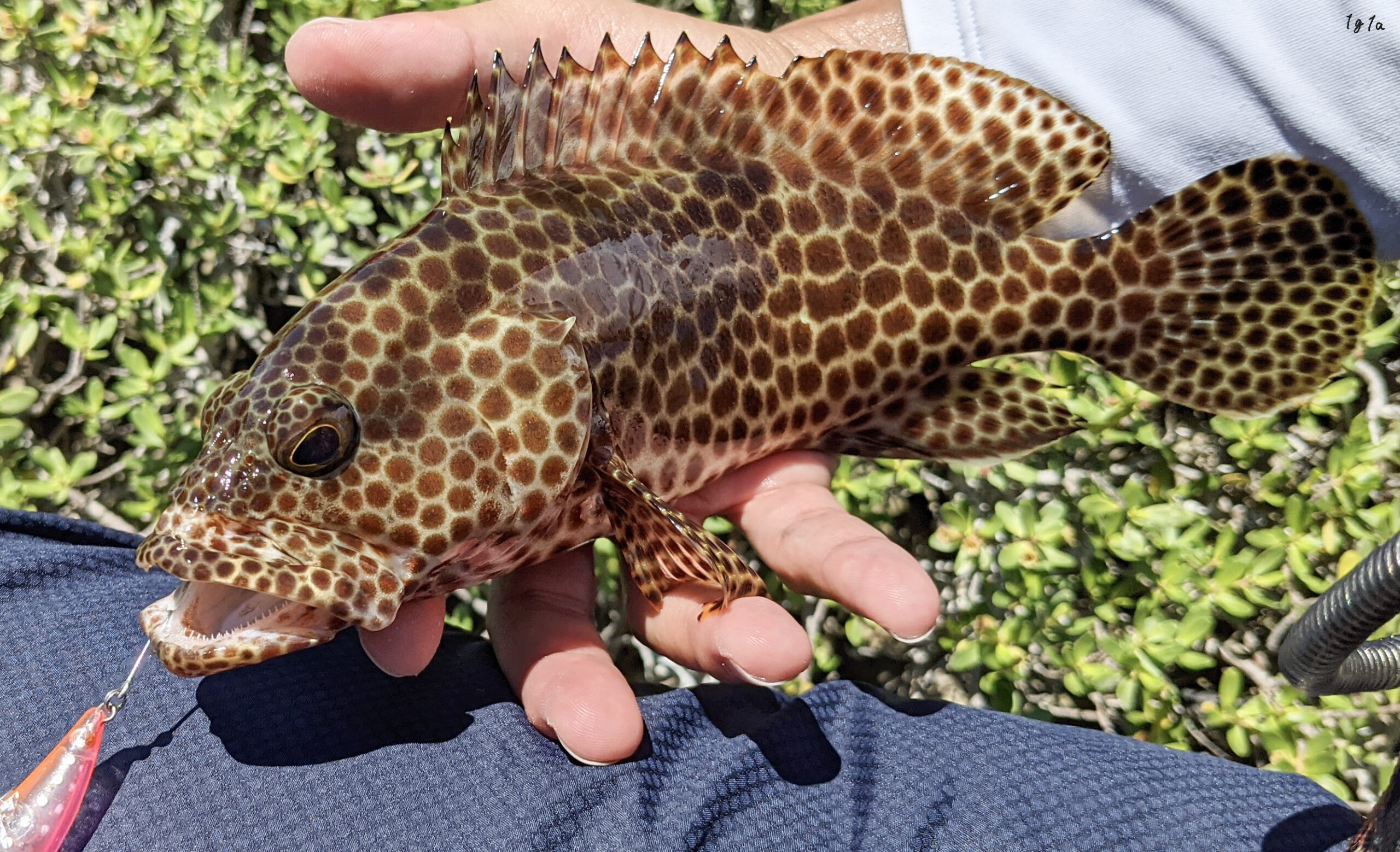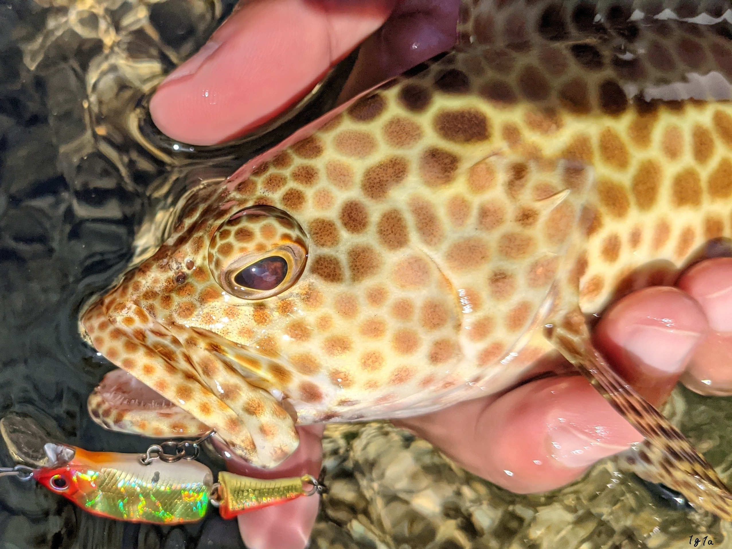 特徴である網目状の模様を持つハタ類は多く、なんとなく外見の雰囲気が似ている種類がたくさんいます。いしみーばいと一括りにせず、写真に撮って模様を比べてみてください。