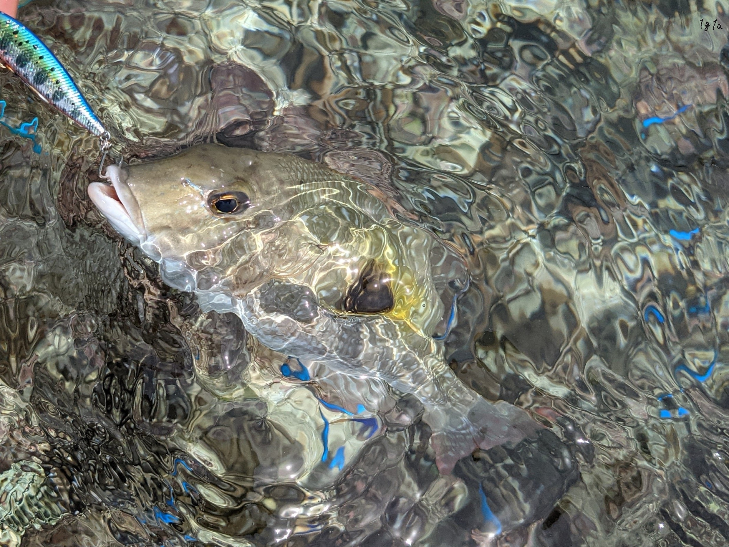 たまん(ハマフエフキ)、うむながー(キツネフエフキ)、くちなじ(イソフエフキ)、くさむるー(マトフエフキ)・・・個人的、沖縄のルアーゲームにおけるフエフキダイ四天王の一角。