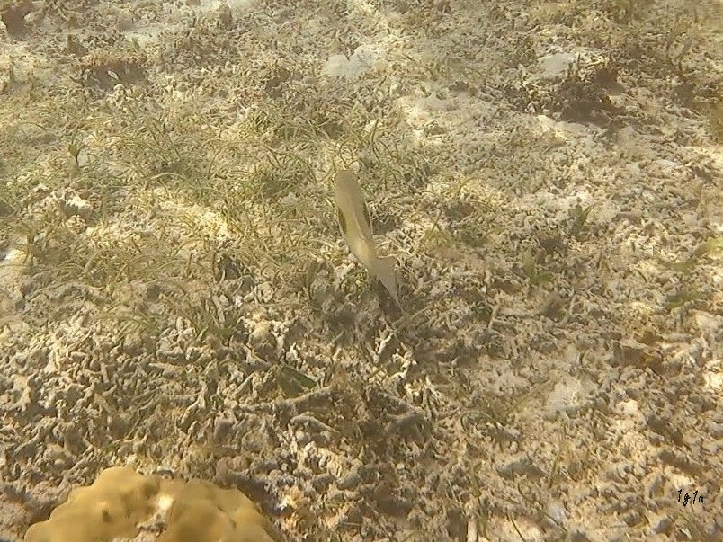 水中では、ビーチから入れるような砂地や藻場のエリアでよく見かけますが、やはり警戒心が強く、こちらを意識しながら離れるように泳いでいってしまいます。